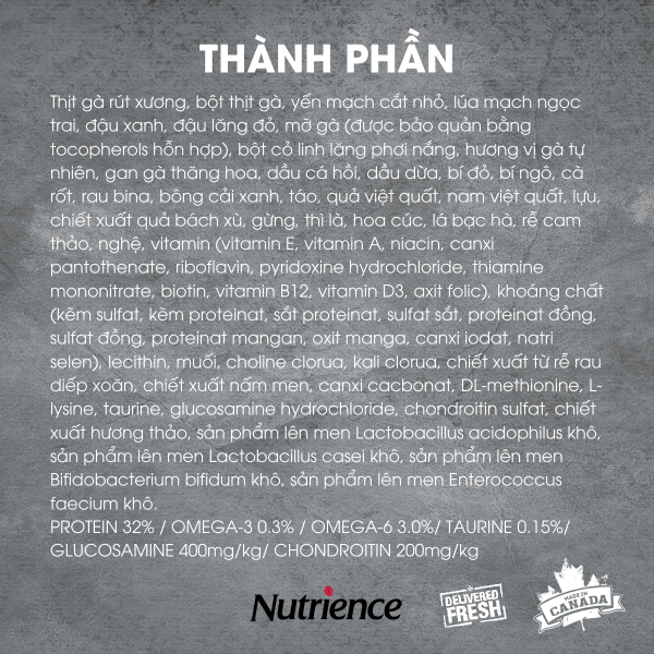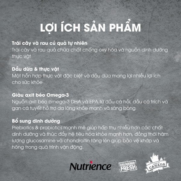 Nutrience chỉ dùng những thành phần tốt nhất chuẩn Canada cho các sản phẩm của mình.
