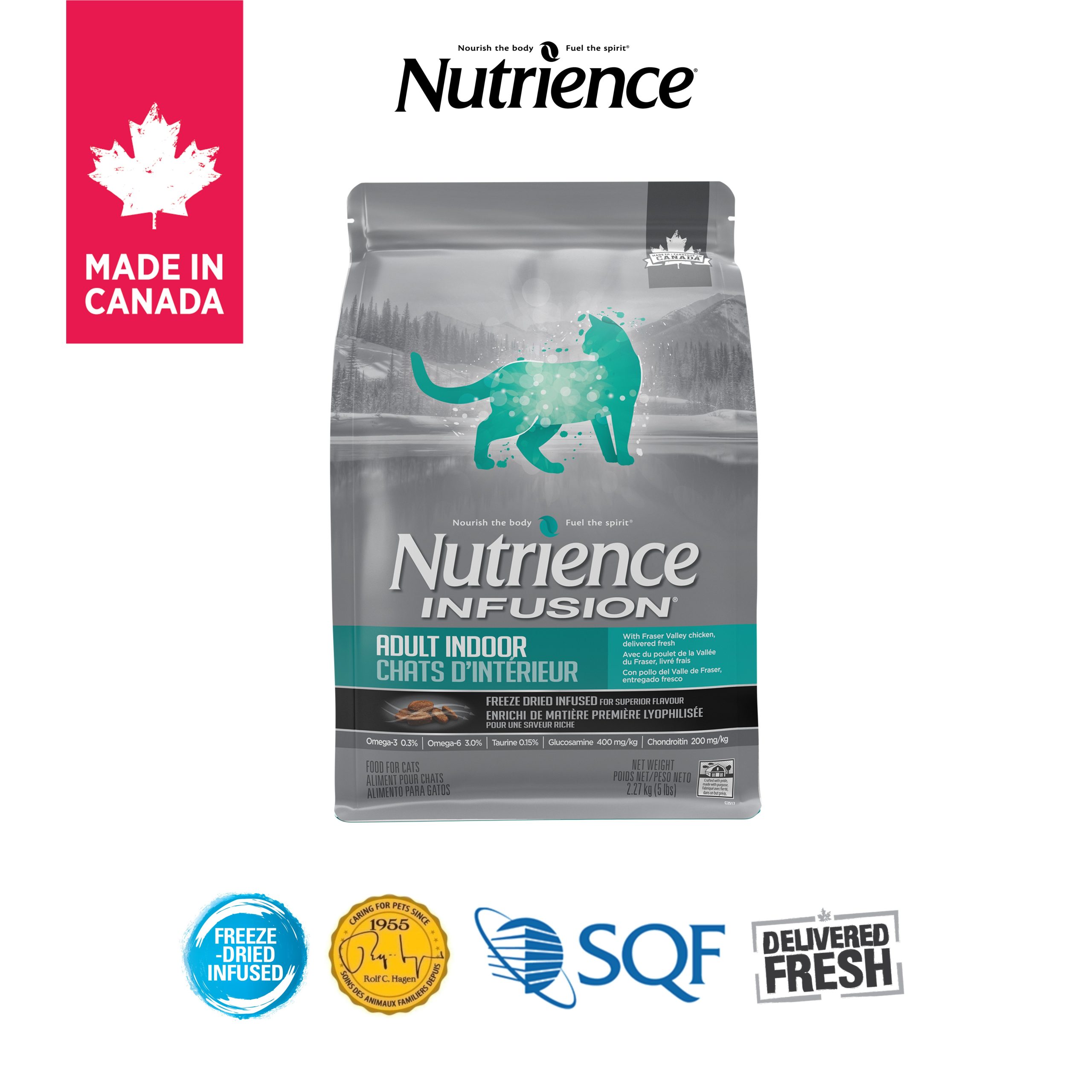 Nutrience Infusion Adult Indoor là thức ăn cho mèo do Canada sản xuất riêng dành cho mèo trong nhà, sản phẩm là sự kết hợp từ thịt gà tươi, không bao giờ đông lạnh, ngũ cốc nguyên hạt có hàm lượng đường huyết thấp, rau, trái cây và các loại thực vật giàu chất dinh dưỡng. Sản phẩm mang đến sức khỏe toàn diện cho mèo.