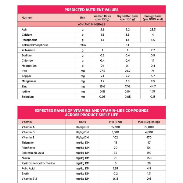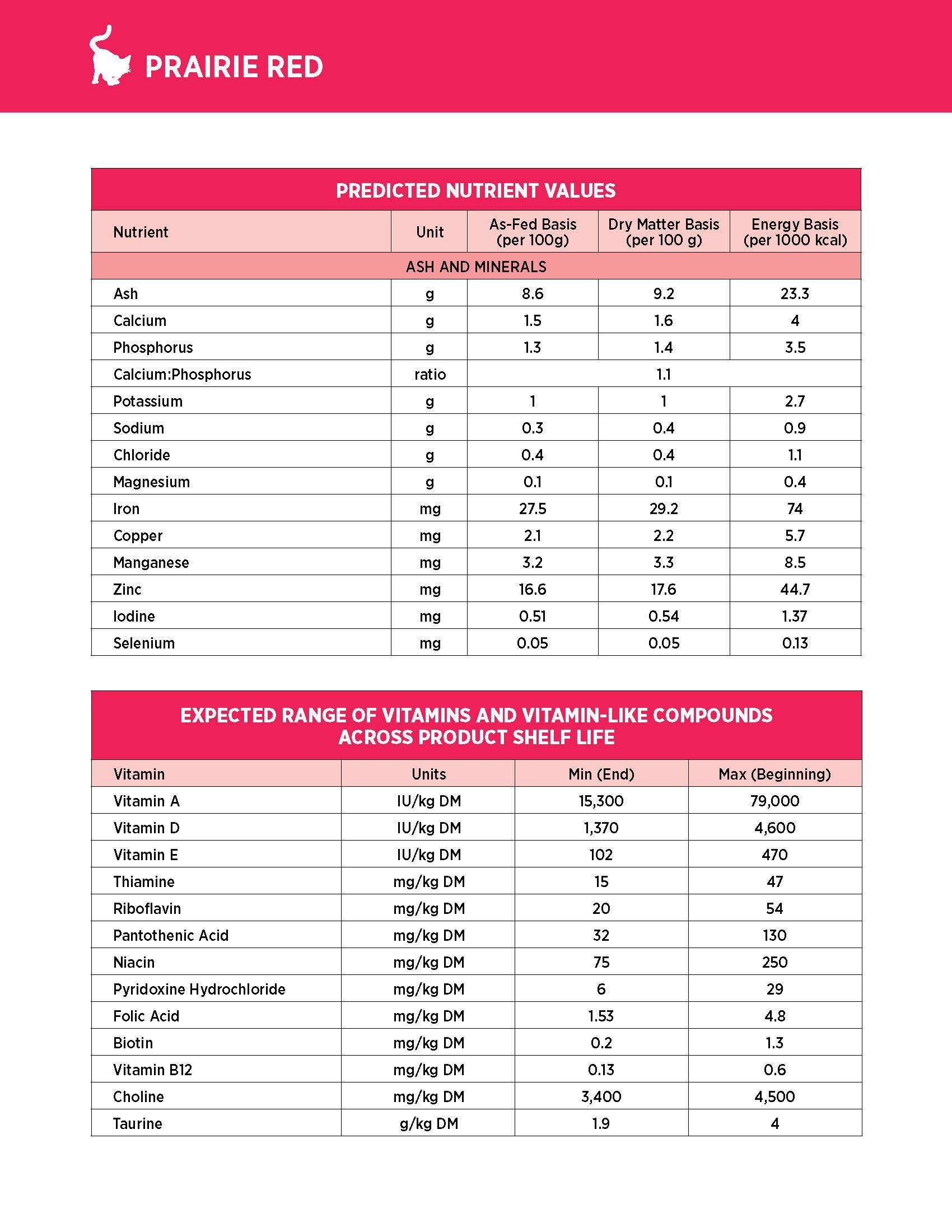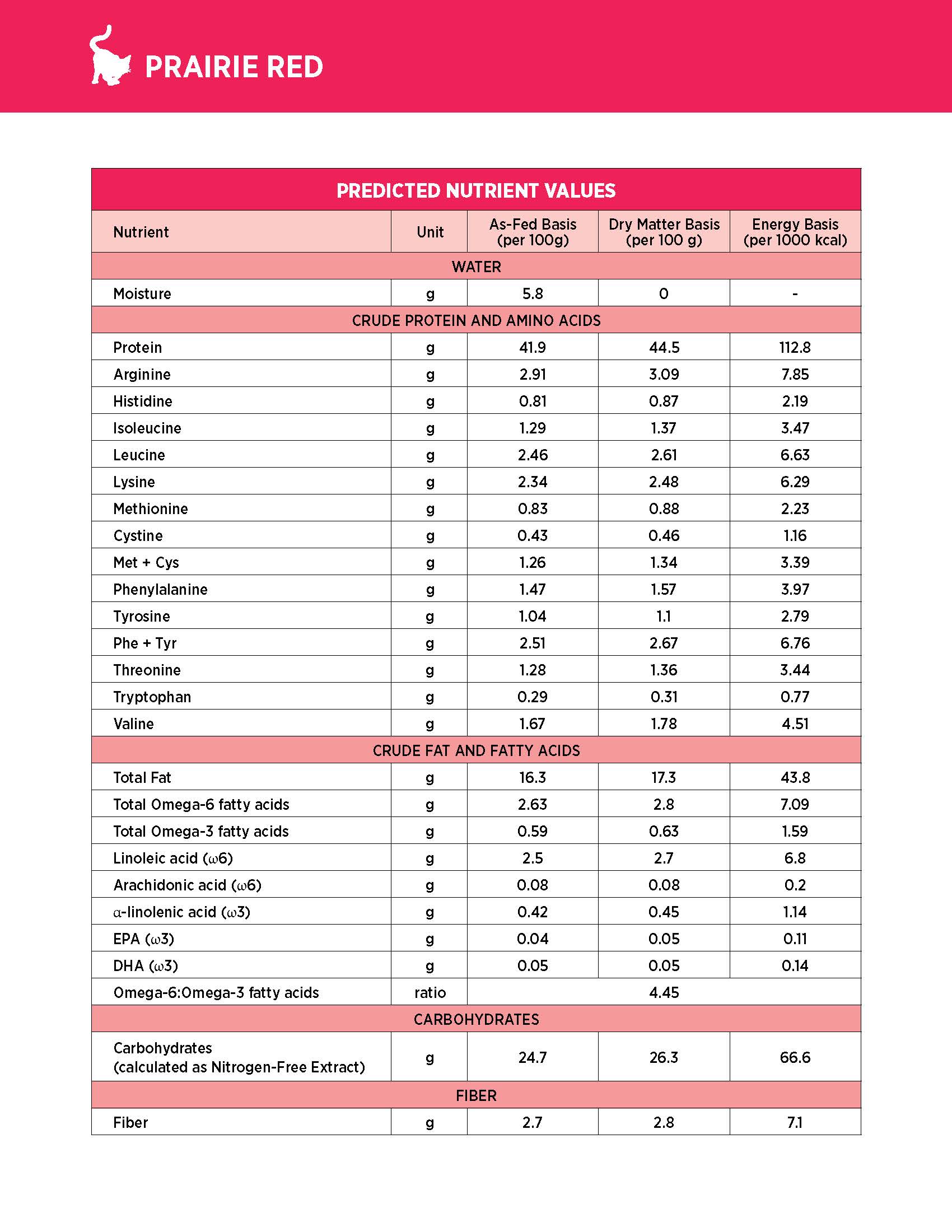 Công thức Nutrience SubZero Prairie Red được thiết kế để đáp ứng đầy đủ các mức dinh dưỡng do AAFCO Cat Food Nutrient Profiles thiết lập cho mọi giai đoạn phát triển của mèo.